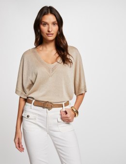 Sweter z dekoltem w serek i krótkim rękawem